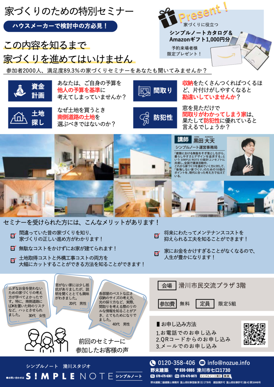 という家づくり特別セミナーを完全予約制限定5組様で開催いたします。