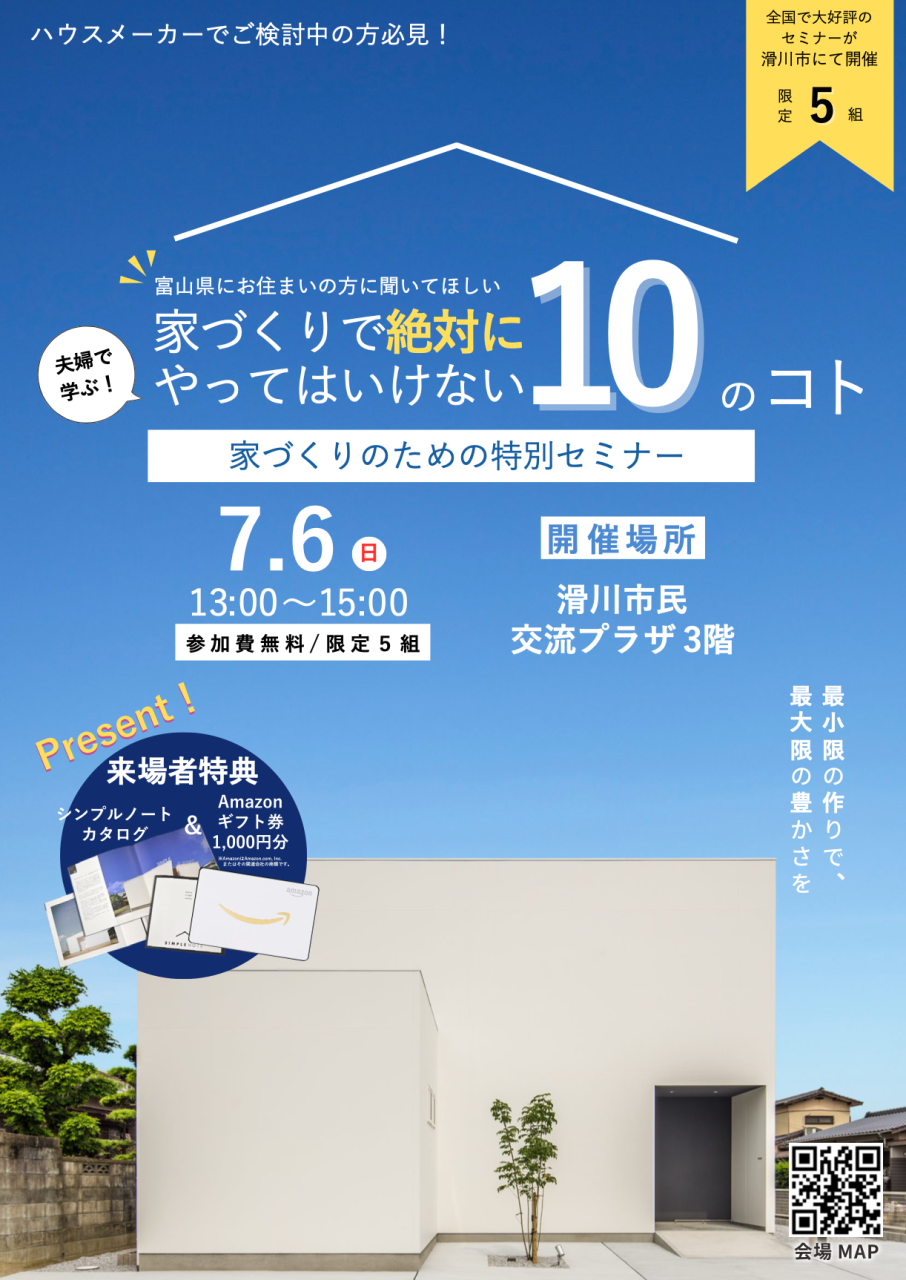 第15回夫婦で学ぶ家づくりセミナー『家づくりで絶対にやってはいけない10のコト』