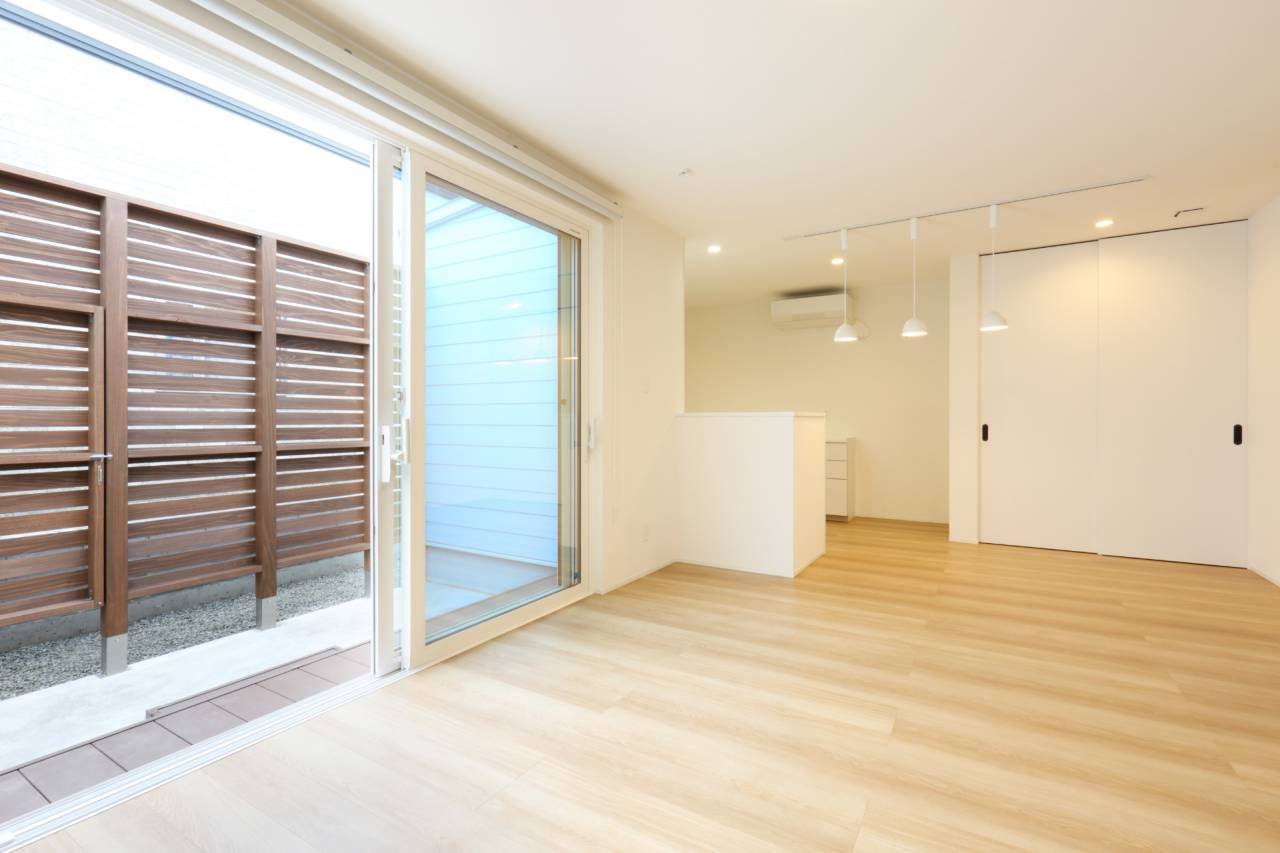 高い壁に守られた中庭から、リビングの奥深くまで柔らかな光が届きます。周囲からの視線を物理的に遮断しているため、カーテンを開け放して生活することが可能。外の空気を肌で感じながら過ごす時間が、日々の暮らしに豊かな余白を生み出します。