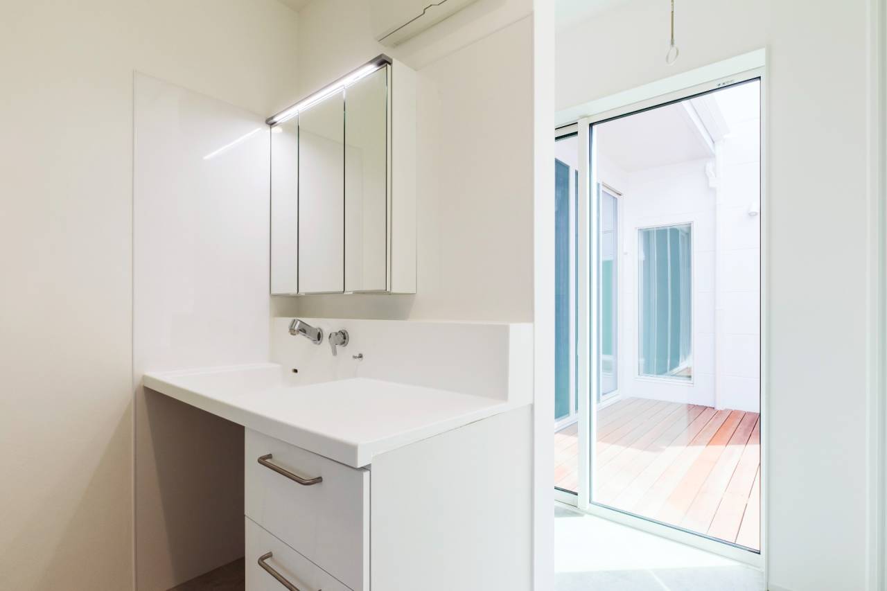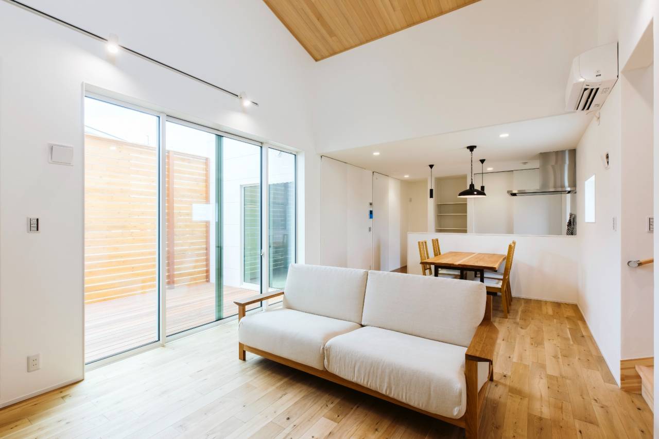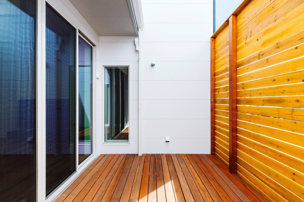 高い位置に配された窓は、周囲の環境に左右されず、一日中安定した自然光を室内の奥深くまで届けます。「窓を開けられないストレス」を解消し、空だけを切り取る贅沢な借景を実現しました。内と外が溶け合う「プライベート・デッキ」