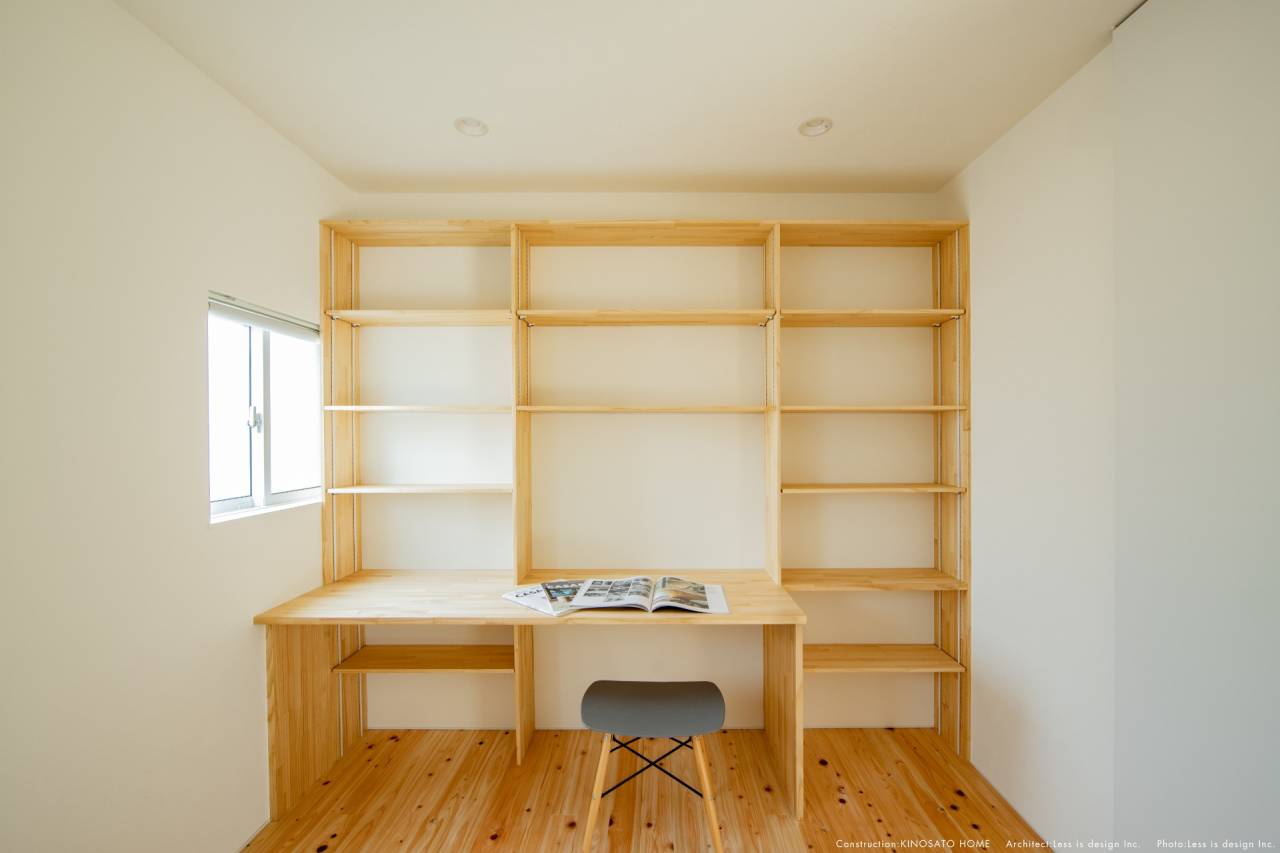 壁一面を最大限に活用した大容量のデスクとシェルフ。リモートワークや子どもの学習、趣味の場所として、リビングの美しさを損なうことなく、機能的に暮らしを支えます。視覚的ノイズを消すハイドア